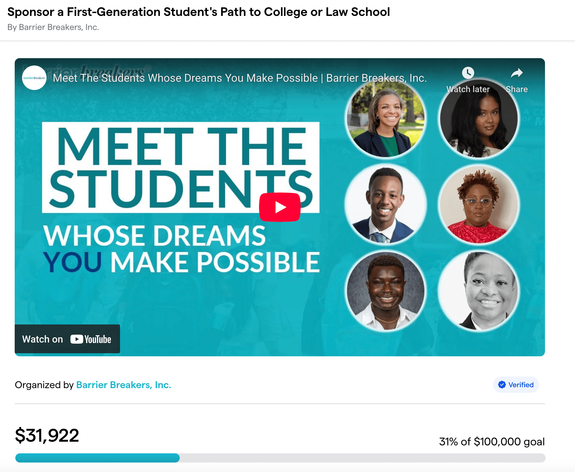 Barrier Breakers®, Inc. has supported 7,000+ students on the college and law school application journey. In addition to sliding scale services based on income, we partner with non-profit organizations and institutions to provide service pro bono services to high-need students. Learn more about our work and how you can continue to support access to higher education for everyone!
