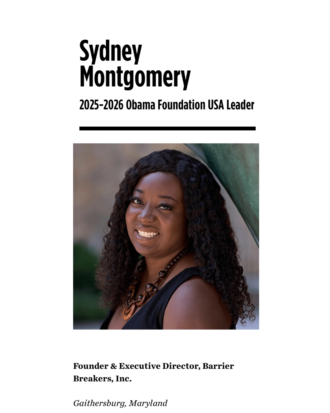 This fall, our Founder & Executive Director, Sydney Montgomery, was selected as an Obama Foundation USA Leader for the 2025–2026 cohort. This prestigious program identifies changemakers across the country who are working to strengthen communities, expand equity, and reimagine opportunity.